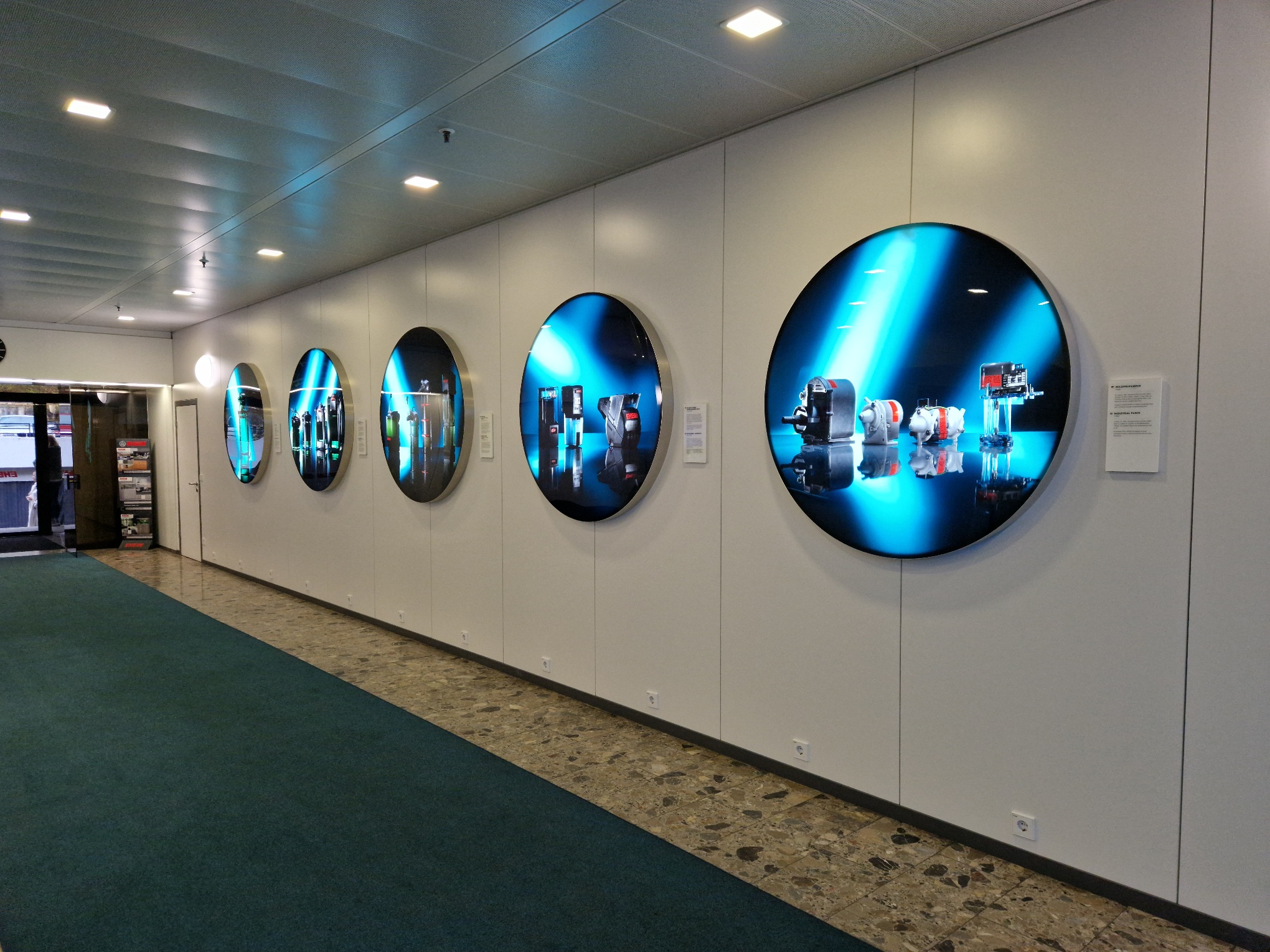 Vstupní hala Ve vstupní hale do továrny je v obrázcích ukázaná historie produktů, od prvních externích filtrů Eheim classic, až po nové filtry Professionel nebo automatická krmítka. |