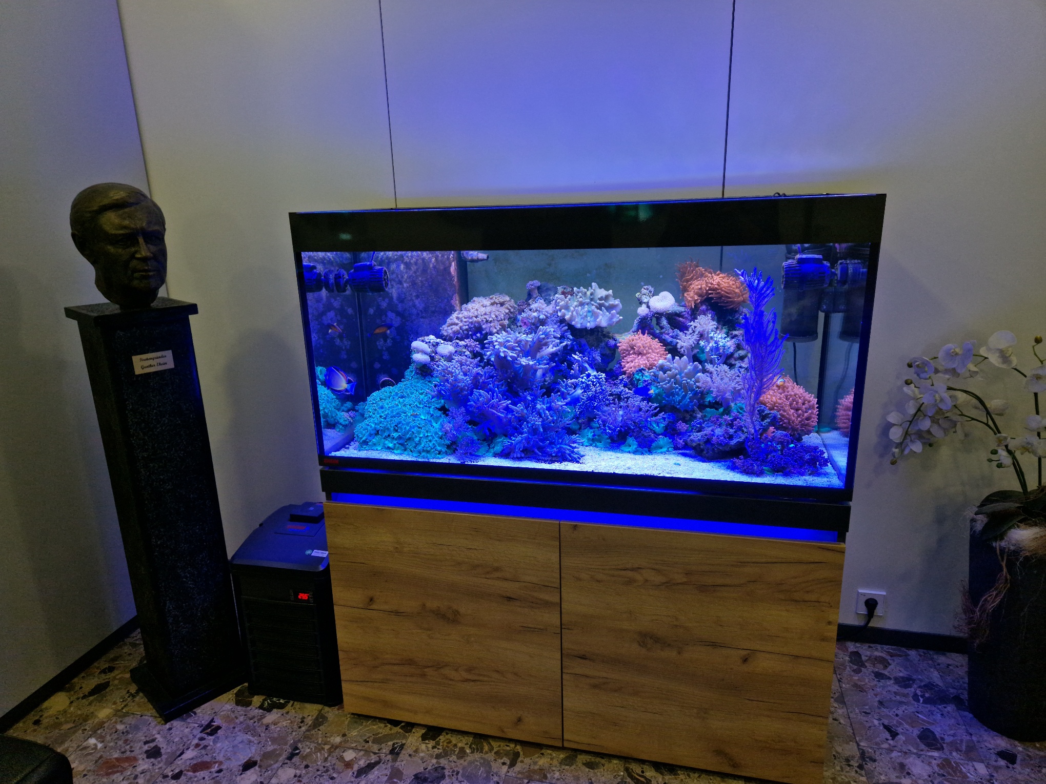 Všude samá akvária Ať už se jedná o vstupní halu, konferenční místnosti nebo servisní centrum tak téměř v každé místnosti narazíte na akvárium. Tyto akvária jsou v Eheimu využívaná na testování nových produktů a jejich vybavení. Díky vlastním zkušenostem s akvaristikou je společnost schopná velice dobře inovovat a držet krok s konkurencí. |