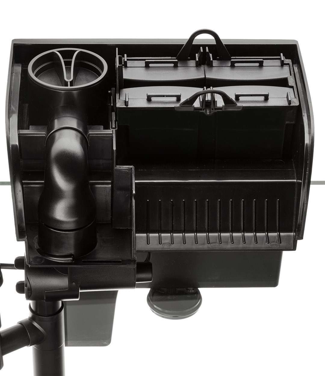 Jakýkoli kontakt mezi tělesem filtru a sklem akvária je chráněn gumou. Tím se snižují vibrace běžící jednotky a eliminuje se klepání nebo narážení do krytu filtru.