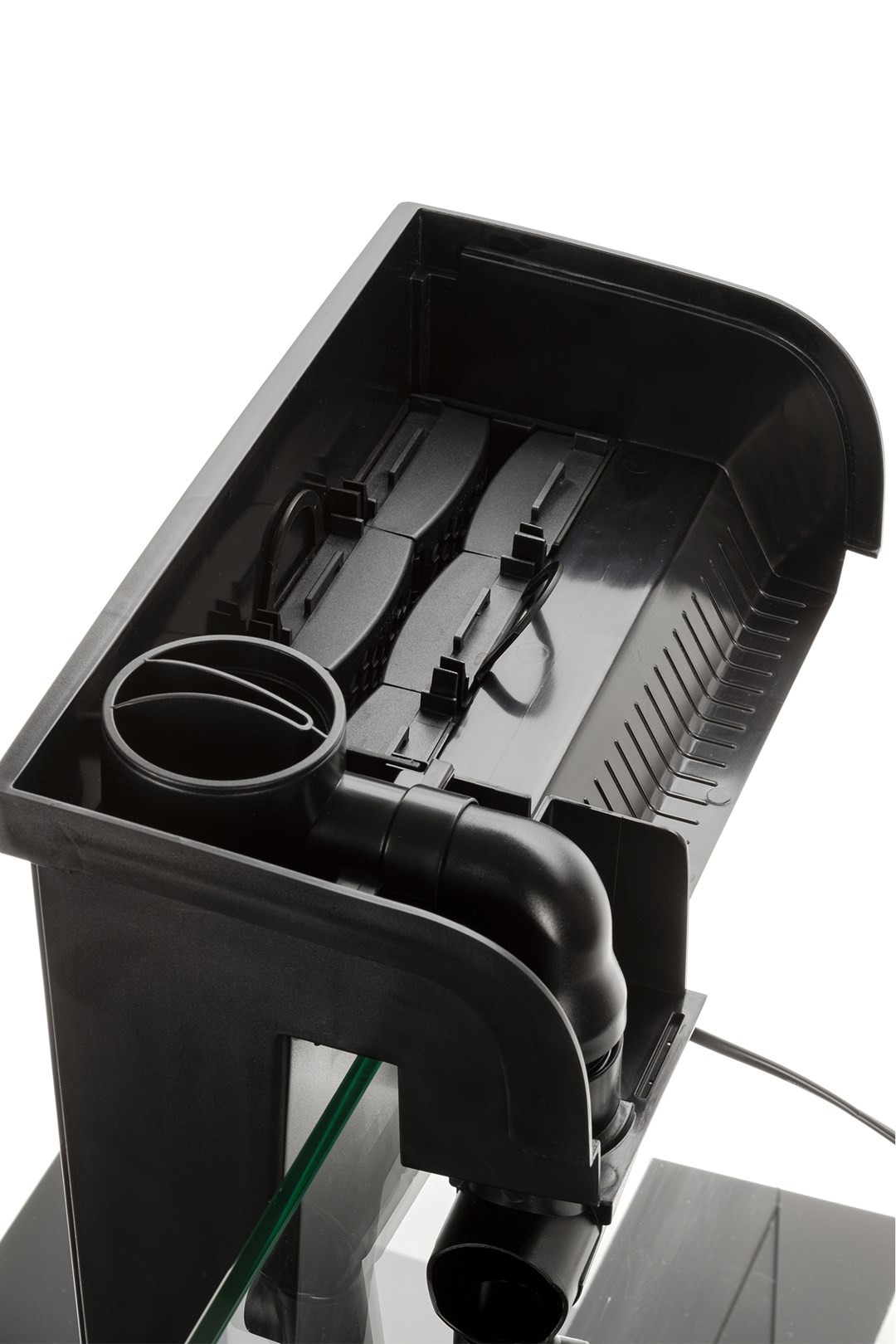 Jakýkoli kontakt mezi tělesem filtru a sklem akvária je chráněn gumou. Tím se snižují vibrace běžící jednotky a eliminuje se klepání nebo narážení do krytu filtru.