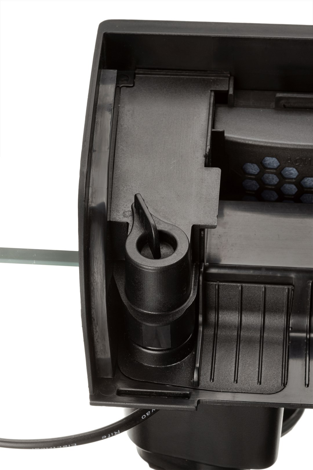 Jakýkoli kontakt mezi tělesem filtru a sklem akvária je chráněn gumou. Tím se snižují vibrace běžící jednotky a eliminuje se klepání nebo narážení do krytu filtru.