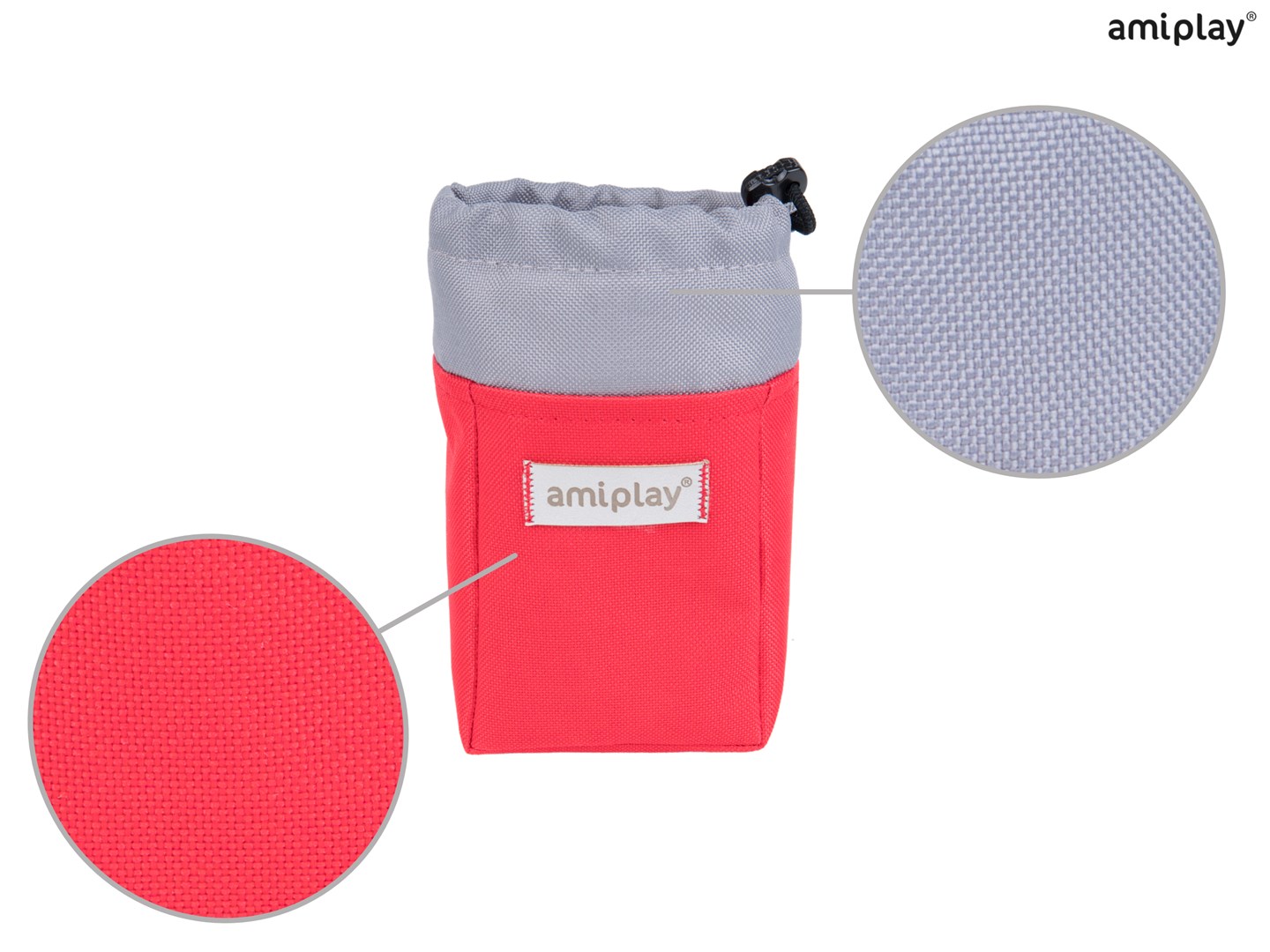 Taška má poutko s karabinou, takže ji můžete připevnit přímo ke kalhotám nebo provléknout opaskem. Chcete-li zabránit vysypání pamlsků nebo ochránit obsah před deštěm, jednoduše sáček uzavřete stahovací šňůrkou.