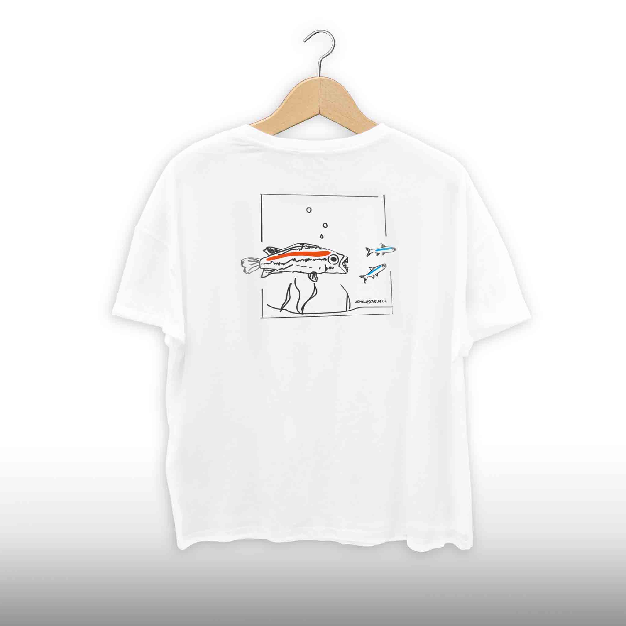 Motiv trička a čepic snapback dostal název ´´žeru ryby´´, vtipný design by mohl potěšit každého milovníka ryb a akvaristiky všeobecně. Dále je tričko i čepice navržená, tak aby se dalo běžně nosit a aby na něj nebyli zbytečné reklamy. Cílem je snaha vytvořit stylovou kolekci oblečení a doplňků, kterou navíc podpoříte tvorbu videí na youtube a růst vaší oblíbené akvaristiky.