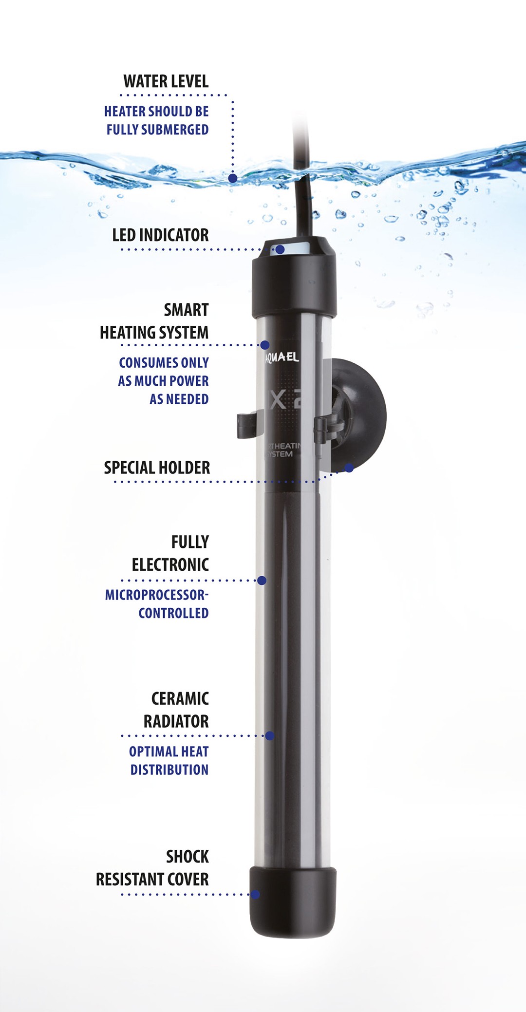 Skleněné akvarijní topítko s termostatem. Plně automatické topítko udržuje konstantní teplotu ve Vašem akváriu 25 C (+ - 0,5 C ). Zajišťuje naprosto bezpečný a bezporuchový provoz zařízení.