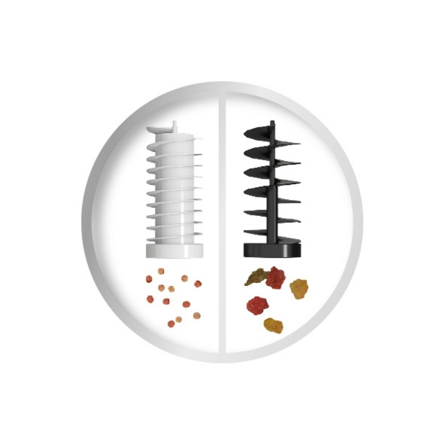 ![]() | Pro všechny typy krmiv. Ideální pro granulované a vločkové krmivo díky dvěma přiloženým šnekovým šroubům. |