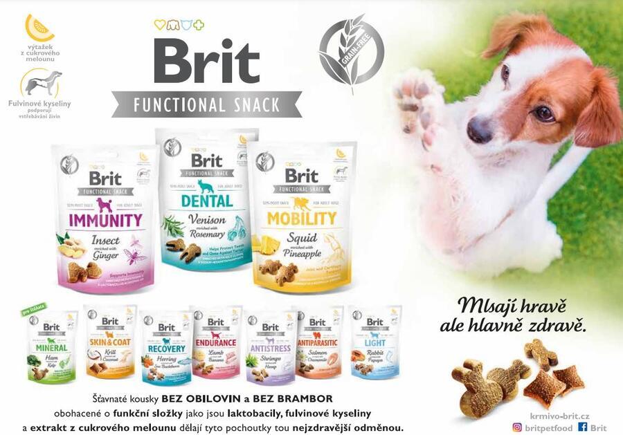 Brit Care Dog Functional Snack jsou lahodné pamlsky plné pečlivě vybraných ingrediencí, které podporují a zlepšují zdraví vašeho psa. Tato jedinečná řada obsahuje 10 produktů, které cílí na všechny důležité aspekty zdraví vašeho čtyřnohého kamaráda – od posílení imunity až po zlepšení kvality srsti. Ať už potřebujete podpořit pohyblivost kloubů, trávení nebo celkovou vitalitu, tyto funkční pamlsky jsou skvělým způsobem, jak svému psovi dopřát potřebnou péči ve formě chutné odměny. Dopřejte svému mazlíčkovi víc než jen pamlsek – dopřejte mu podporu pro šťastný a zdravý život! |