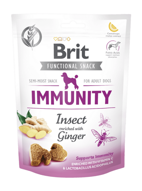 Brit Care Dog - Funkční pamlsek pro psy "Imunita" s Hmyzím proteinem a zázvoremReceptura s hmyzem a zázvorem pomáhá nastartovat správnou imunitu psa.