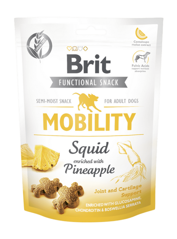 Brit Care Dog - Funkční pamlsek pro psy "Pohyblivost" s olihníReceptura s olihní obohacená o ananas plný antioxidantů.