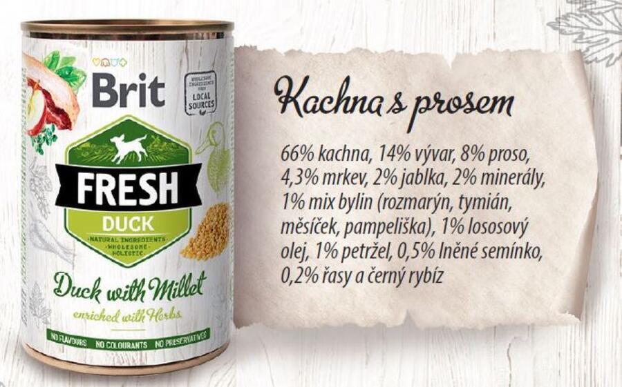 Brit Fresh konzerva pro psy, receptura kachna s prosem
