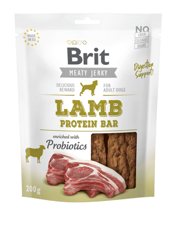 Brit Jerky Snack - masové pamlsky pro psy s Jehněčím a KuřecímSušené masové pamlsky ve tyčinek – proteinový pamlsek.