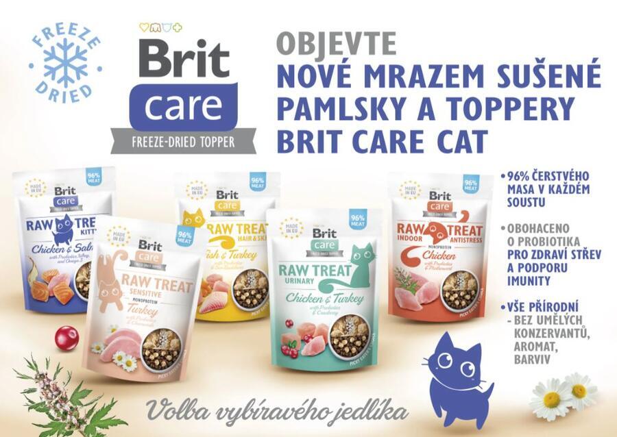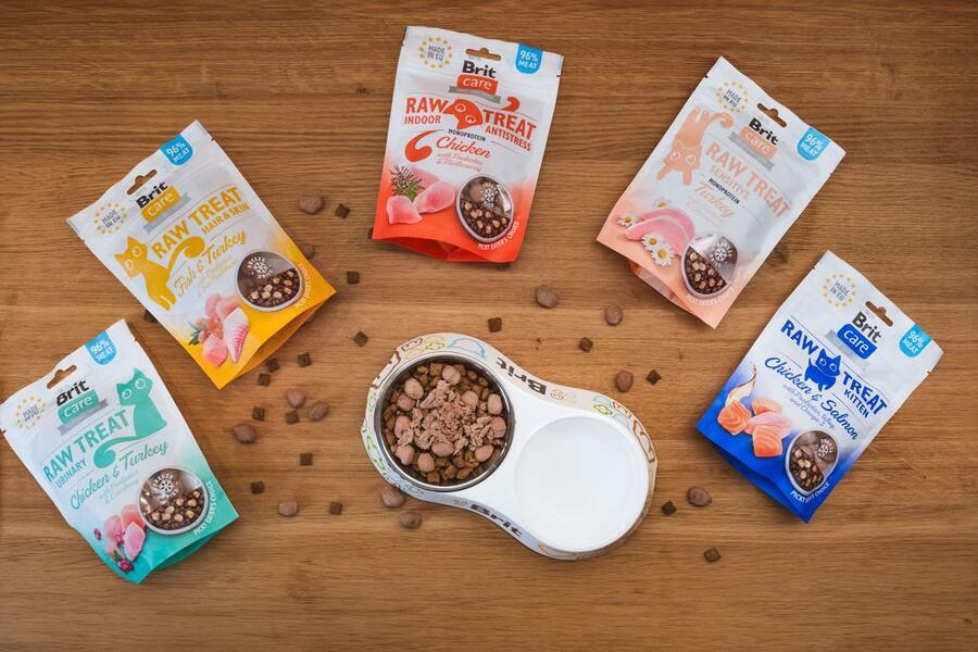 Brit Raw mrazem sušený pamlsek na podporu srsti a kůže pro dospělé kočky - Ryba a krůta s probiotiky a rakytníkem
