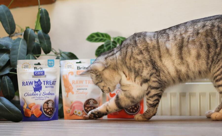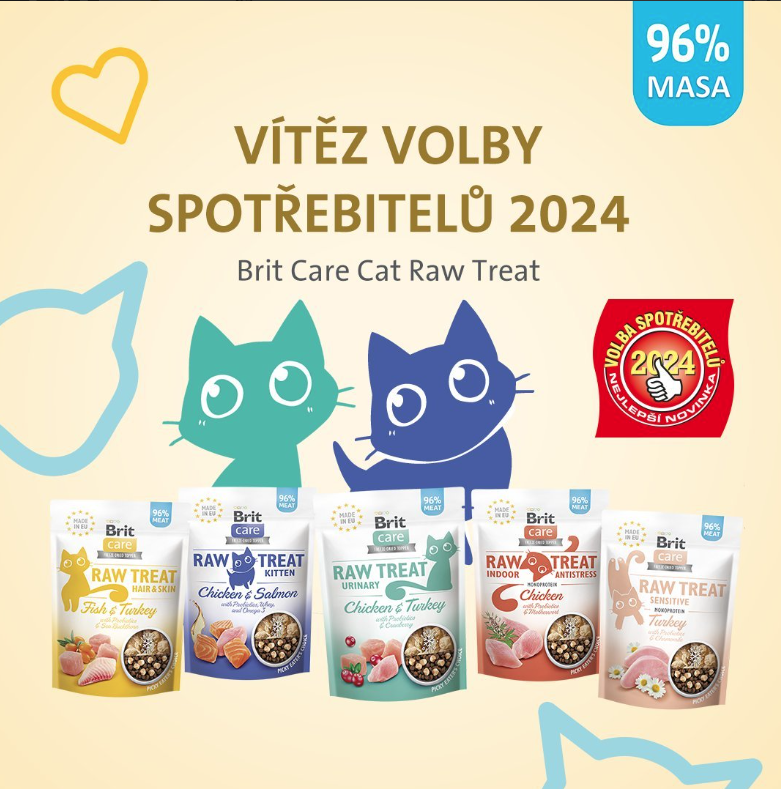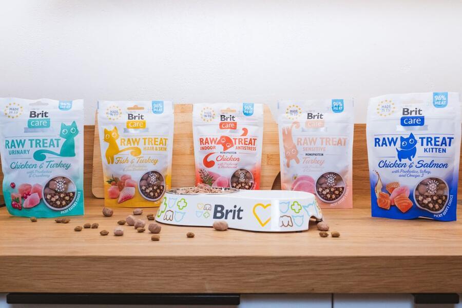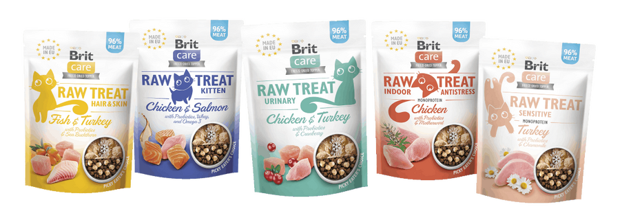 Brit Raw mrazem sušený pamlsek pro kočky s citlivým trávením - Krůta s probiotiky a heřmánkem