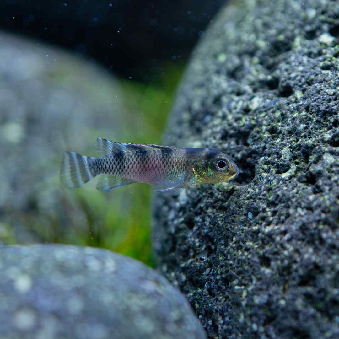 je malá, sladkovodní cichlida pocházející z povodí řeky v Africe. Jedná se o atraktivní rybu s délkou kolem 5 cm, která je ceněna mezi akvaristy pro své výrazné barvy a zajímavé chování. Samečci mají na těle výraznější modré a červené zbarvení, zatímco samičky jsou často větší a mají jasnější růžové břicho, což je pro cichlidy netypické. Tento druh je mírumilovný a preferuje dobře zarostlá akvária s úkryty, kde se může cítit bezpečně. Jeho název odkazuje na neobvyklé barevné rozdíly mezi pohlavími.