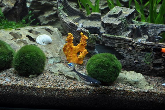 Cladophora aegagropila není opravdu rostlina, ale kulička řas od šířky 3-10 cm. Jedná se o dekorativní výjimku, při které cíleně přidáváme řasy do akvária. Obvykle se tato rostlina vyskytuje v mělkých jezerech, kde se díky pohybu vln formuje do koule. V akváriu se musí pravidelně otáčet, aby se udržovala v žádaném tvaru. Cladophora aegagrophila lze rozdělit na menší kousky, které se časem zformují do dalších kuliček, nebo které vytvoří koberec, pokud jsou spojeny s kořeny a kameny. Rostlina je chráněná v některých částech Japonska.Obsha balení: