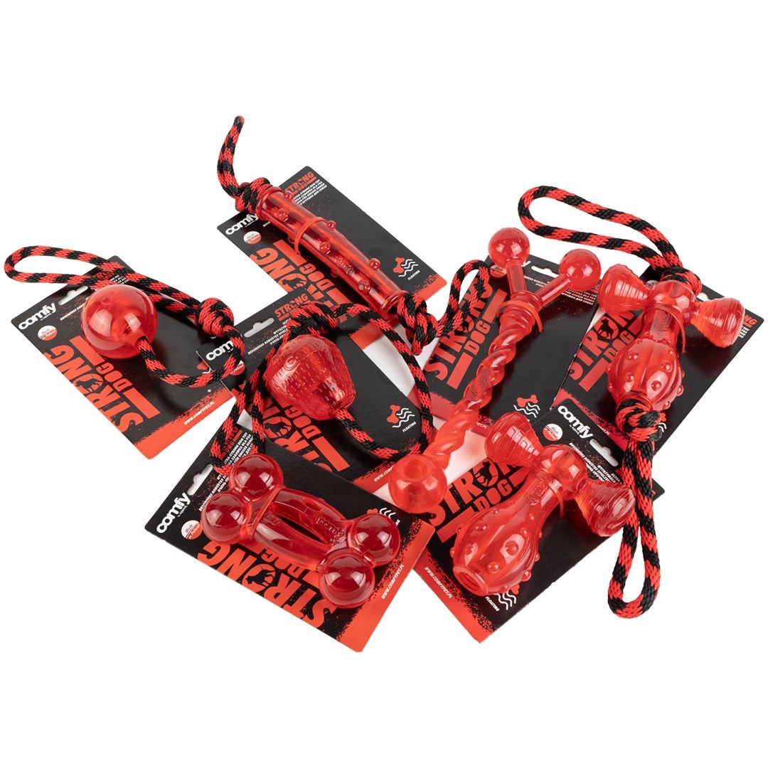 STRONG DOG je jedinečná řada hraček od společnosti COMFY určená pro aktivní psy se silnými čelistmi. Hračky jsou vyrobeny z extrémně odolného materiálu, který je odolný proti kousání a škubání.