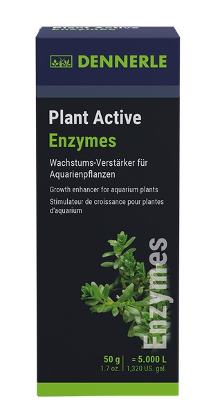 Dalo by se předpokládat, že rostlina poroste na maximum, když bude mít dostatečné množství světla, CO2 a živin. Ale není tomu tak. Praxe ukazuje, že existují i další faktory, které mají příznivý vliv na růst. Dennerle brzy provedl rozsáhlé studie o těchto sekundárních růstových faktorech. Odtud pocházejí rostlinné aktivní enzymy. Rostlinné aktivní enzymyfunguje vícekrát. Přírodní rostlinné enzymy stimulující růst stimulují buněčné dělení. Enzymy jsou biokatalyzátory a mají zásadní význam pro metabolismus rostlin. Například přeměňují rezervní látky na rozpustné látky, které pomáhají rostlině růst. To podporuje tvorbu nových listů a růst výhonků. Plant Active Enzymes je proto zvláště vhodný pro aquascaper, zejména po prořezávání pro urychlení nového růstu. Zároveň vybrané, přírodní aktivní látky podporují stavební a energetický metabolismus. Mohou být absorbovány a metabolizovány rostlinou přímo prostřednictvím listů. To posiluje rostliny a může zvýšit jejich obranyschopnost, např. proti růstu řas na listech. Plant Active Enzymes má také pozitivní vliv na redoxní rovnováhu v akváriu. Oxidací dochází k oxidaci řady živin, a tím se stávají pro rostliny neúčinnými (např. železo a mangan). Redukce převádí tyto živiny zpět do formy, kterou mohou rostliny absorbovat. Rostlinné aktivní enzymy podporují tyto redukční reakce. Rostlinné živiny, které se staly neúčinnými, jsou tak v akváriu remobilizovány a opět zpřístupněny rostlinám. Růstové prostředí je optimalizováno. Zvláště pozitivní: Rostlinné aktivní enzymy udržitelnou podporou růstu rostlin také vytvářejí nepříznivé podmínky pro růst řas. Stávající řasy jsou zpomaleny, růst nových řas je výrazně omezen.