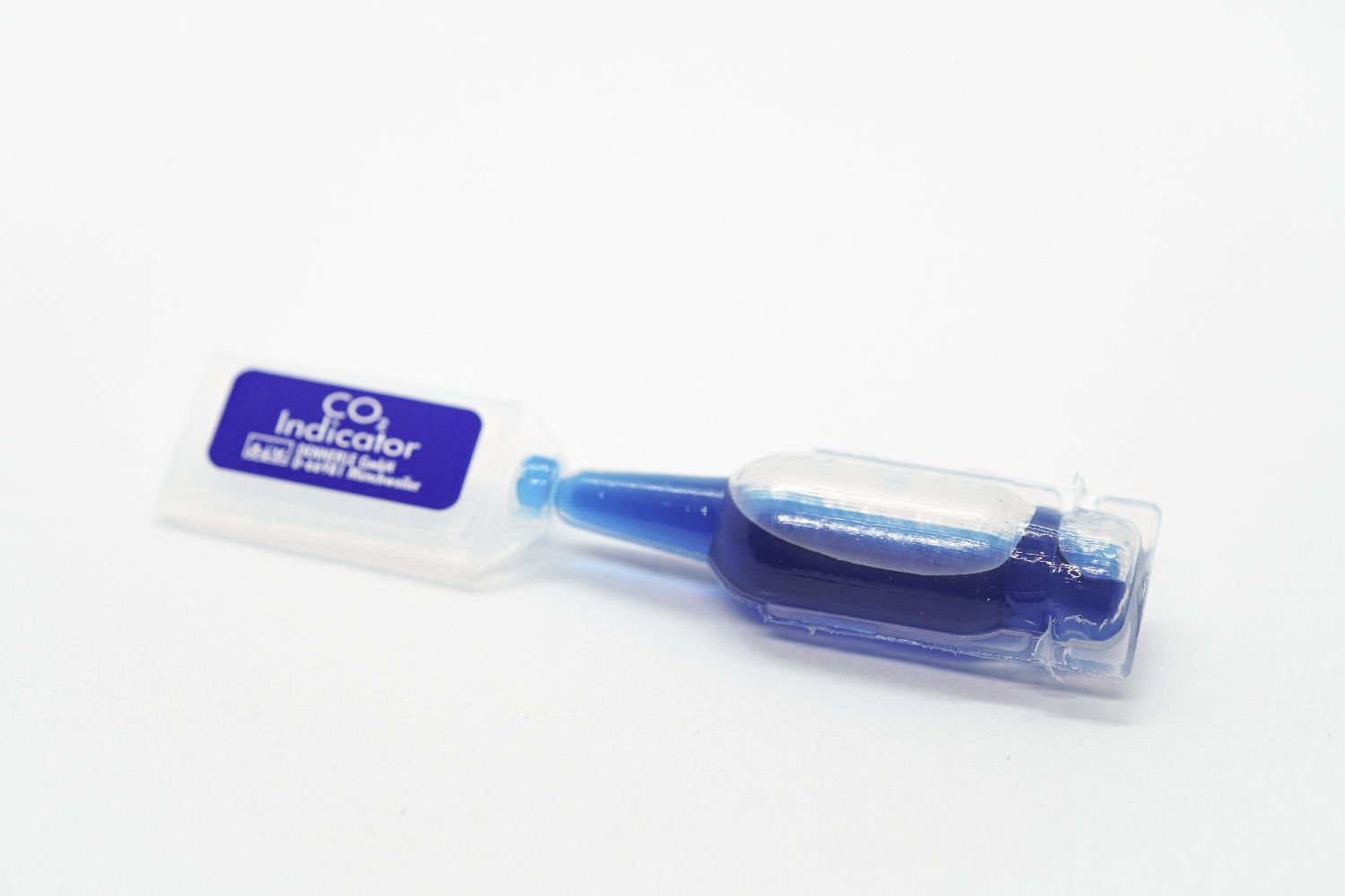 Zbarvením speciálního indikátoru se mění podle obsahu CO2: