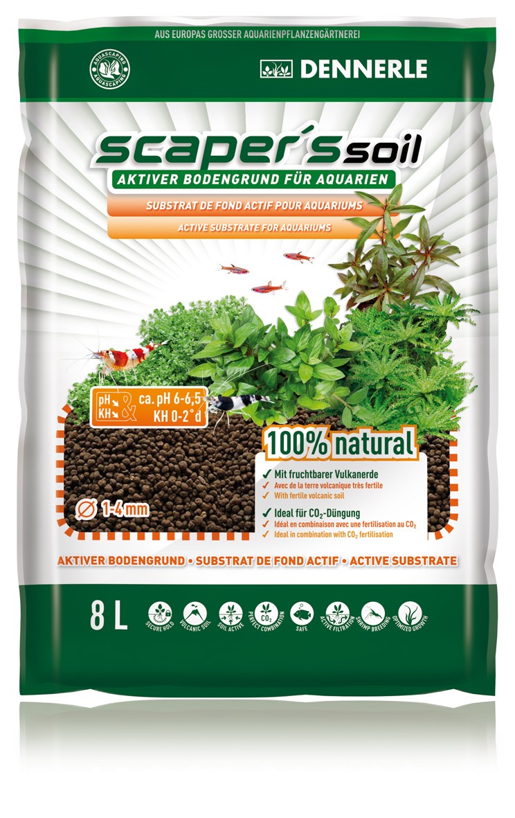 Scaper‘s Soil je speciální aktivní půdní substrát vyvinutý speciálně pro akvaristiku. Vytváří mírně kyselou a měkkou vodu, kterou vyžaduje většina zvířat a rostlin z tropických oblastí. Substrát Scaper‘s Soil je ideální pro rostlinná akvária, zejména pro aquascaping a akvária s krevetami.