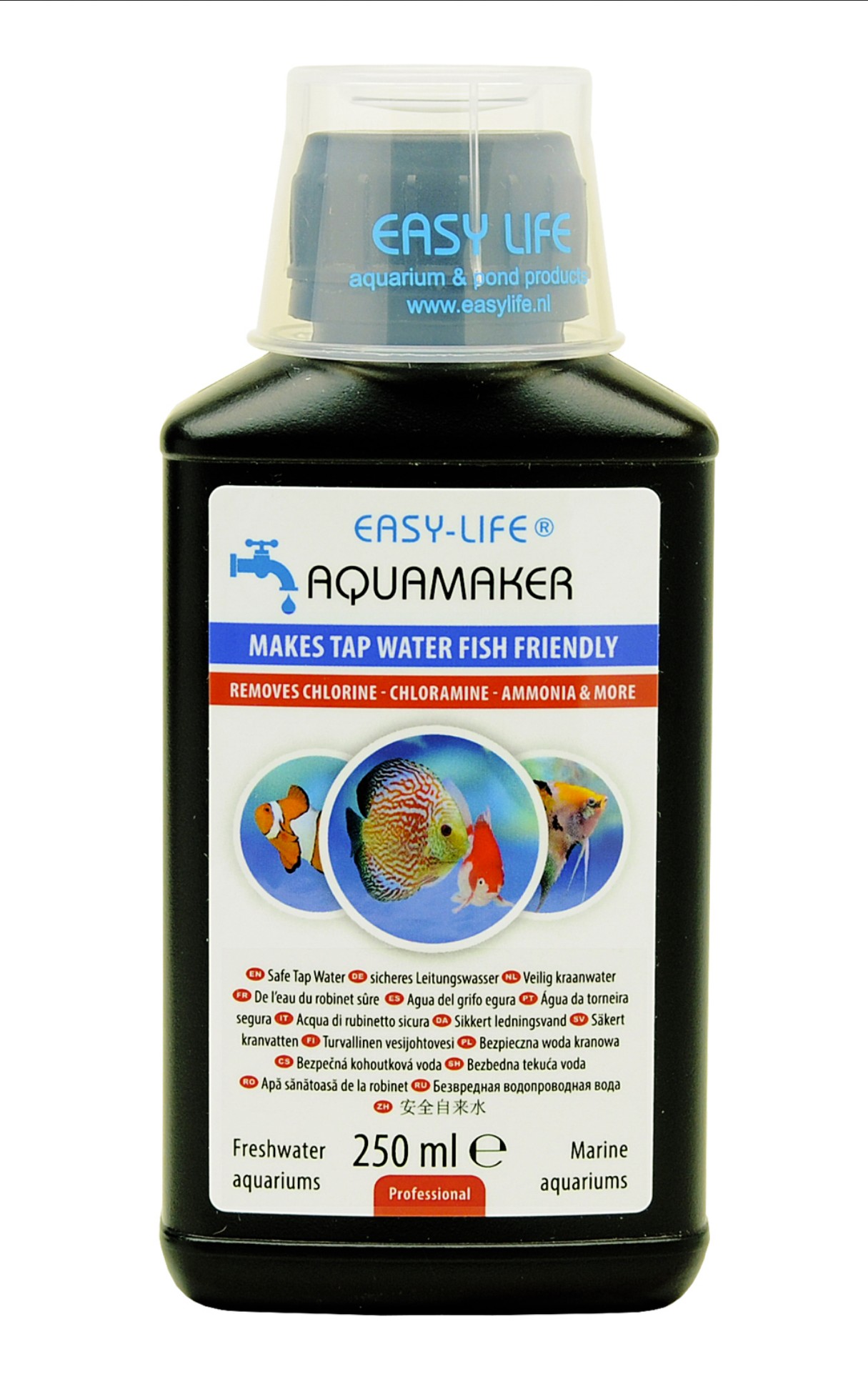 AquaMaker okamžitě neutralizuje škodlivé látky z vodovodní vody a připraví ji k bezpečnému použití v sladkovodních i mořských akváriích. Je šetrný k rybám, rostlinám i bezobratlým a zároveň obohacuje vodu o ochranné stopové prvky. Navíc účinně detoxikuje amoniak a dusičnany, které mohou přispívat k růstu řas.