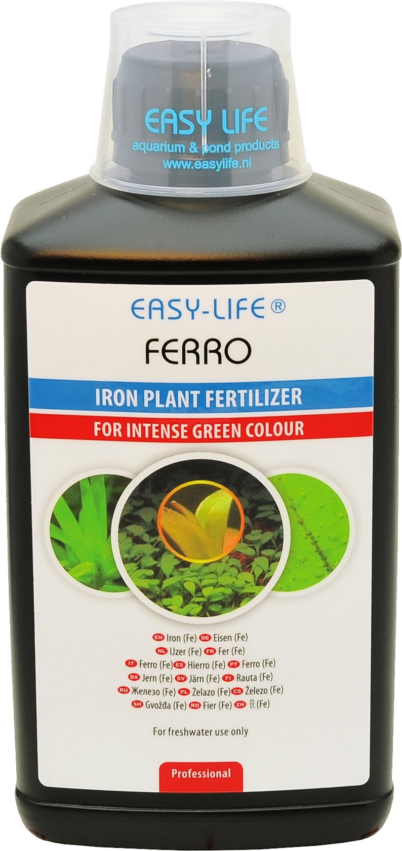 Ferro obsahuje snadnovstřebatelné železo pro rostliny. Železo je nezbytné pro správný vývoj listů u akvarijních rostlin. Železo zajišťuje, že listy rostlin budou zářivě zelenné díky tvorbě chlorofylu.Nedostatek železa se projevuje žloutnutím listů. Ferro pomáhá předejít tomuto problému. Pokud jsou v akváriu rychle rostoucí rostlinky tak je větší pravděpodobnost nedostatku železa. V tomto případě je nezbytné přidat Ferro, aby se zabránilo dalším problémům.