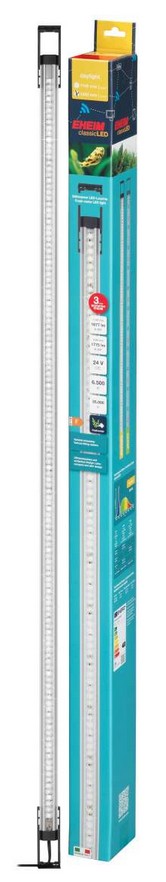 LED světla EHEIM classicLED „daylight“ jsou k dispozici v šesti délkách od 550 do 1300 mm a lze je snadno instalovat pomocí rozšiřitelného montážního držáku. LED pásek se dokonale přizpůsobí jakémukoli akváriu až do šířky 1,30 m a poskytuje optimální osvětlení s úhlem paprsku 120˚ až ke dnu akvária. Ultra kompaktní a velmi tenký design se vejde pod všechny kryty a lze jej proto použít pro většinu akvárií.