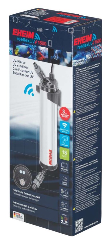 reeflexUV+e je další krok osvědčeného UV čističe reeflexUV EHEIM řízený WiFi. Princip patentované technologie reflektorů (s výrazně zvýšeným germicidním UV-C zářením) zůstal stejný. Zatímco u běžných UV čističek voda protéká kolem UV-C hořáku oklikou, u EHEIM reeflexUV+e to jde přímější cestou. Tím nedochází k žádné ztrátě energie a šetří energii a je dvakrát efektivnější. ReeflexUV+e lze propojit s dalšími produkty z rodiny EHEIM Digital a lze jej ovládat prostřednictvím zařízení s podporou WLAN (smartphony, tablety, notebooky atd.). Můžete například vybrat různé režimy, určit časy a pauzy a dokonce přepnout do režimu booster v případě silného napadení parazity. ReeflexUV+e by měl být použit jako podpora filtru, aby se redukovaly malé organismy (zárodky, spory řas, atd.) v akváriu.