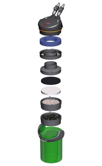"Čistá voda a úsporný provoz"Technicky perfektní, pohodlný a dobře obsluhovatelný. Vnější filtr Eheim Ecco Pro má všechny funkce spojené v ovládacím držadle. Jeho typické držadlo neslouží pouze jako praktická pomůcka pro přenášení filtrů, ale také k řadě dalších účelů.