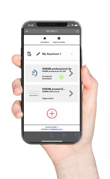 Zařízení je vybaveno wifi sítí, která umožnuje ovládání jednotlivých zařízení skrz chytrý telefon nebo PC. Pomocí internetového rozhraní budete mít přehled o všech zařízeních, která máte v provozu a možnost nastavit si určité programy u určitých zařízení. Hlavní výhoda EHEIM DIGITAL je sychronizace s ostatními zařízeními, aby docházelo k správnému fungování jednotlivých funkcí. Pokud máte zájem podívejte se na náš blog, kde se můžete dozvědět více o jednotlivých výhodách u každého zařízení, které je vybavené EHEIM DIGITAL. |