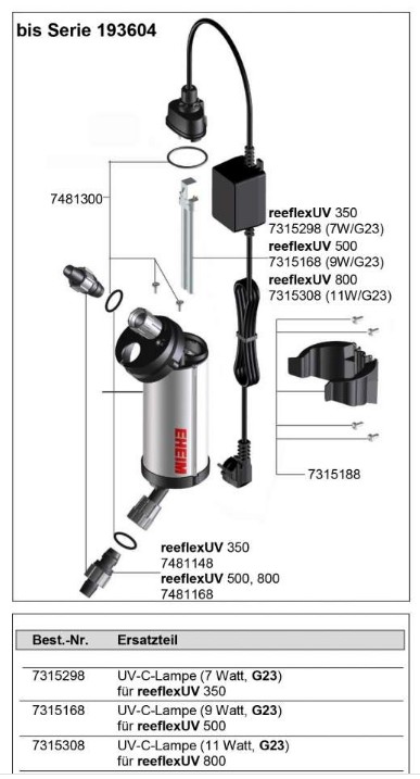 POZOR !!! pouze pro UV lampu serie 193604 !!!