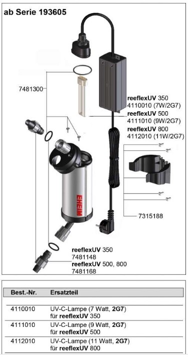 POZOR !!! pouze pro UV lampu serie 193605 !!!