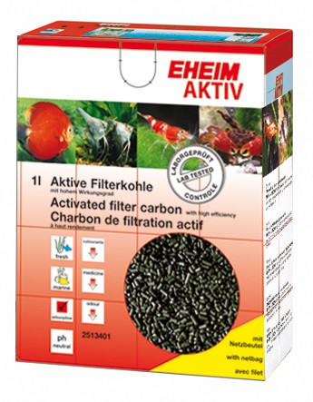 EHEIM AKTIV je vysoce účinné aktivní filtrační uhlí, které velmi rychle váže z vody škodlivé chemické látky jako jsou zbytky léčiv, pesticidů, chlor nebo barviva. Ideální k použití po medikaci nebo při novém založení akvária. Vhodné pro sladkovodní i mořská akvária. Uhlí je kyselinou proprané a aktivované pro okamžité použití.