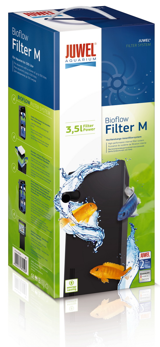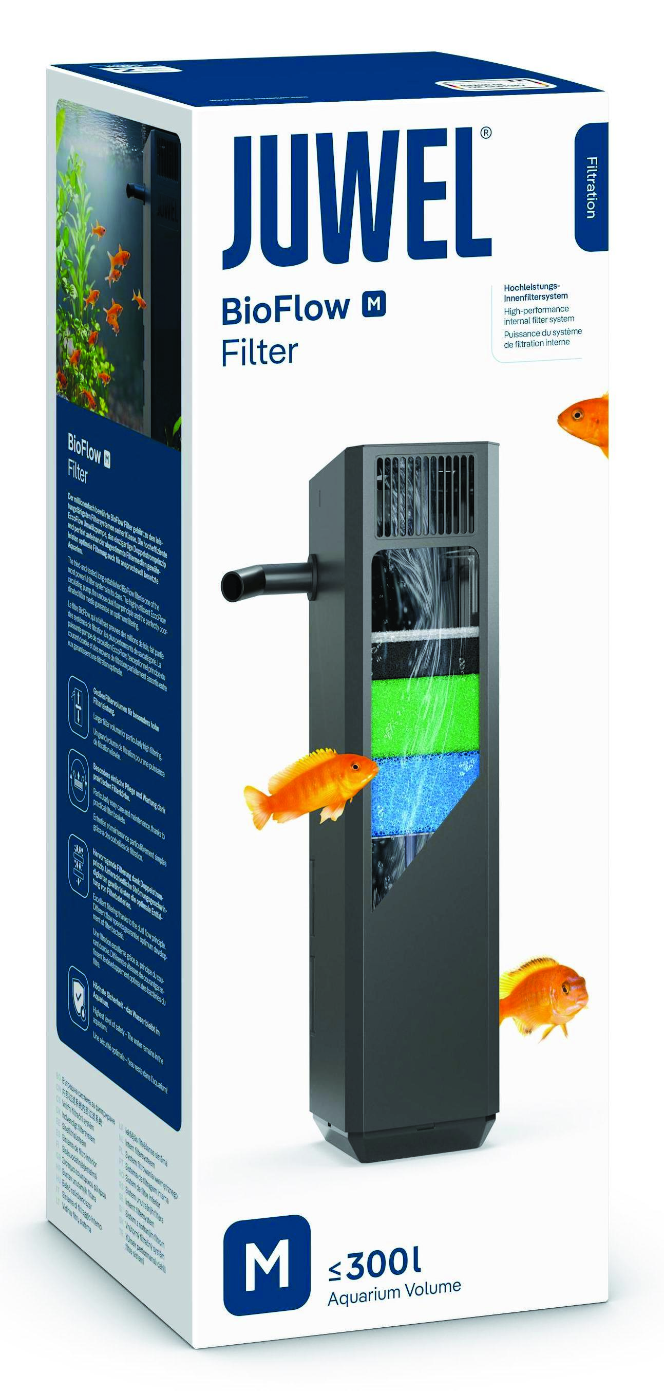 Juwel Bioflow Filter System obsahuje dvoufázový biologický vnitřní filtrační systém, včetně čerpadla a filtračních materiálů. Filtrační systém lze jednoduše instalovat pomocí akvarijního silikonu.