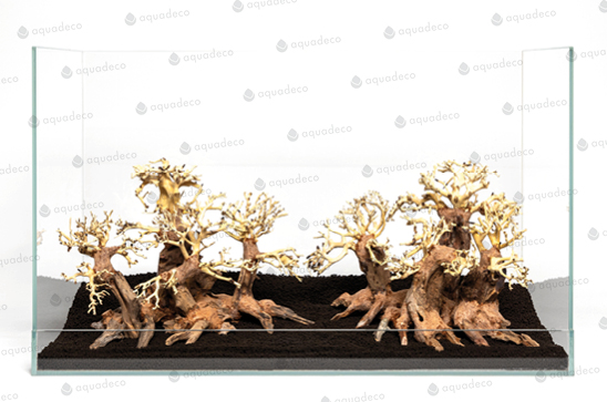 Bonsaie jsou ručně vyřezávaný a lepeny tak, aby připomínaly jedinečné japonské stromy a budily co největší přírodní dojem. K výrobě bonsaí se využívá pouze a jen přírodních materiálů, aby se dosáhlo co nejlepšího vzhledu v přírodních akváriích. Větvičky jsou výborně přizpůsobená na přichycení mechů a to i bez nutnosti lepení nebo vázání. Velmi Vám to zpříjemní pravidelné zastřihávání mechu a dodá jedinečnému vzhledu, Vašeho akvária.