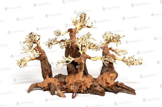 Bonsaie jsou ručně vyřezávaný a lepeny tak, aby připomínaly jedinečné japonské stromy a budily co největší přírodní dojem. K výrobě bonsaí se využívá pouze a jen přírodních materiálů, aby se dosáhlo co nejlepšího vzhledu v přírodních akváriích. Větvičky jsou výborně přizpůsobená na přichycení mechů a to i bez nutnosti lepení nebo vázání. Velmi Vám to zpříjemní pravidelné zastřihávání mechu a dodá jedinečnému vzhledu, Vašeho akvária.