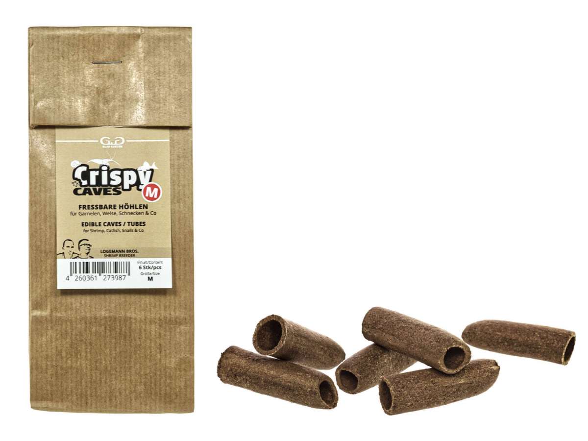 Jedlé křupavé jeskyně obsahují základní přírodní vlákninu a zároveň podporují tvorbu biofilmu na jejich povrchu. Zejména pro živočichy, kteří se rádi pasou, jako jsou krevety, šneci a sumci, je vláknina důležitou součástí jejich stravy a je potřebná pro trávení.Jeskyně Crispy Caves se skládají z velké části z dřevěných vláken (celulózy), jílu a listů, které se obvykle nacházejí v přirozeném prostředí zvířat a jsou přijímány ve velkém množství. Živiny, jako jsou řasy a bakterie, jsou přijímány s takovými vlákny, které se usazují jako biofilm na povrchu a tvoří základ výživy. Crispy Caves jsou proto dokonalým doplňkem k pravidelnému krmení základní potravou.