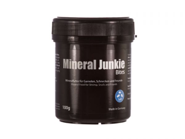 Mineral Junkie Bites – doplňkové krmivo pro bezobratlé – Minerály jsou pro bezobratlé v akváriích důležité. Organismus si je nedokáže vyrobit sám, ale musí být přijímány potravou. S Mineral Junkie Bites můžete svým akvarijním živočichům poskytnout všechny minerály, které potřebují. Tyto malé tyčinky/kousátka obsahují anorganické minerály a také minerály, které jsou organicky vázané a zabraňují nedostatku minerálů, který u krevet a jiných korýšů často způsobuje problémy se svlékáím, pomalý růst a vysokou úmrtnost zejména u mláďat.Hlemýždi mohou dostat Mineral Junkie Bites, aby se zabránilo tvorbě děr v jejich ulitách. Šneci také lépe rostou, když jsou zásobeni dostatečným množstvím minerálů, a jejich ulity bývají hladší a pevnější.