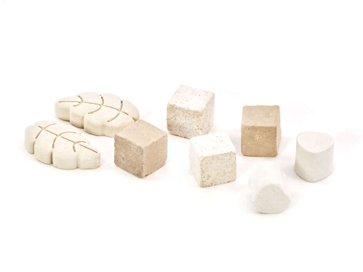 Vše po 2 ks minerální dřevité kostky, minerální kostky artemie, minerální listy, minerální srdce