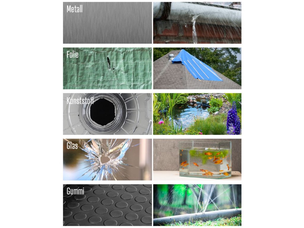 Extrémně silná a vodotěsná opravná páska „EasyFIX“ . Slepíte materiály jako plast, fólie, kov, guma nebo sklo. S lepící páskou lze také bez problémů lepit odpovídající materiály pod vodou. Snadno opravíte: malá poškození zahradních hadic, stříšek, fólii v jezírku, plastových jezírek, fólii v bazénů, drenážní trubky, vše co potřebujete rychle opravit. Stačí ustříhnout požadovaný rozměr a jednoduše zalepíte samolepící páskou EasyFIX.