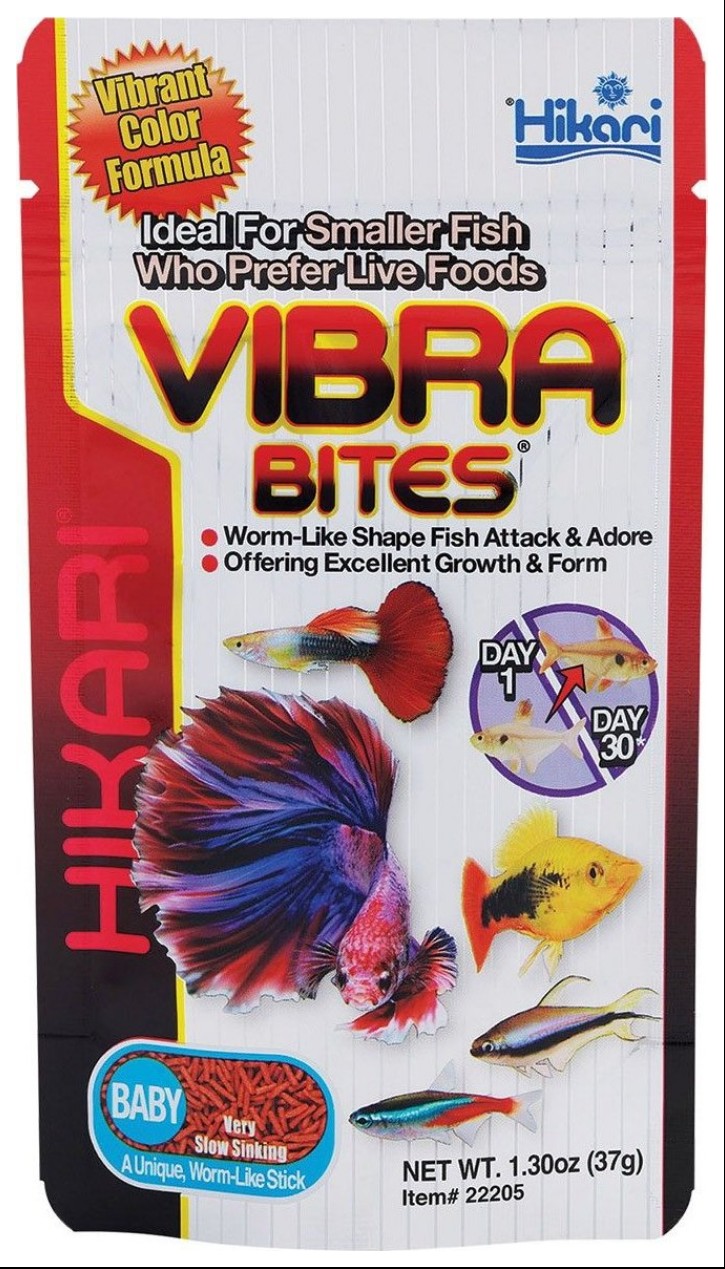 - Kompletně bezpečná alternativa krmiva HIKARI® TROPICAL VIBRA BITES ™ bylo vyvinuto tak, aby pelety měly tvar a vzhled živé krvavé patentky, kterou ryby tak zbožňují. Jedinečně vyvážená formulace nabízí výživné hodnoty klasických patentek a přitom neexistuje riziko parazitárních a bakteriálních nákaz. Jedinečné přísady nabízejí vynikající chuť, které ryby neodolají.