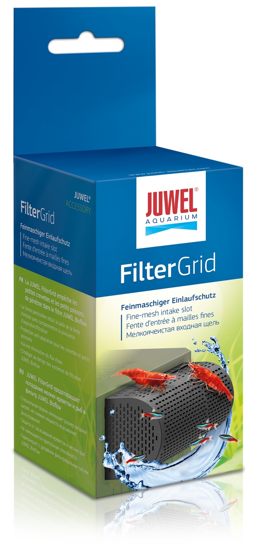 Originální FilterGrid Juwel zabraňuje nasátí malých rybek a krevetek do filtru Bioflow. Díky jemnější mřížce zmenšuje nasávací otvory na horní a boční straně filtru, aniž by došlo ke snížení výkonu čerpadla. Dokonale ladí s designem filtru a snadno se instaluje.