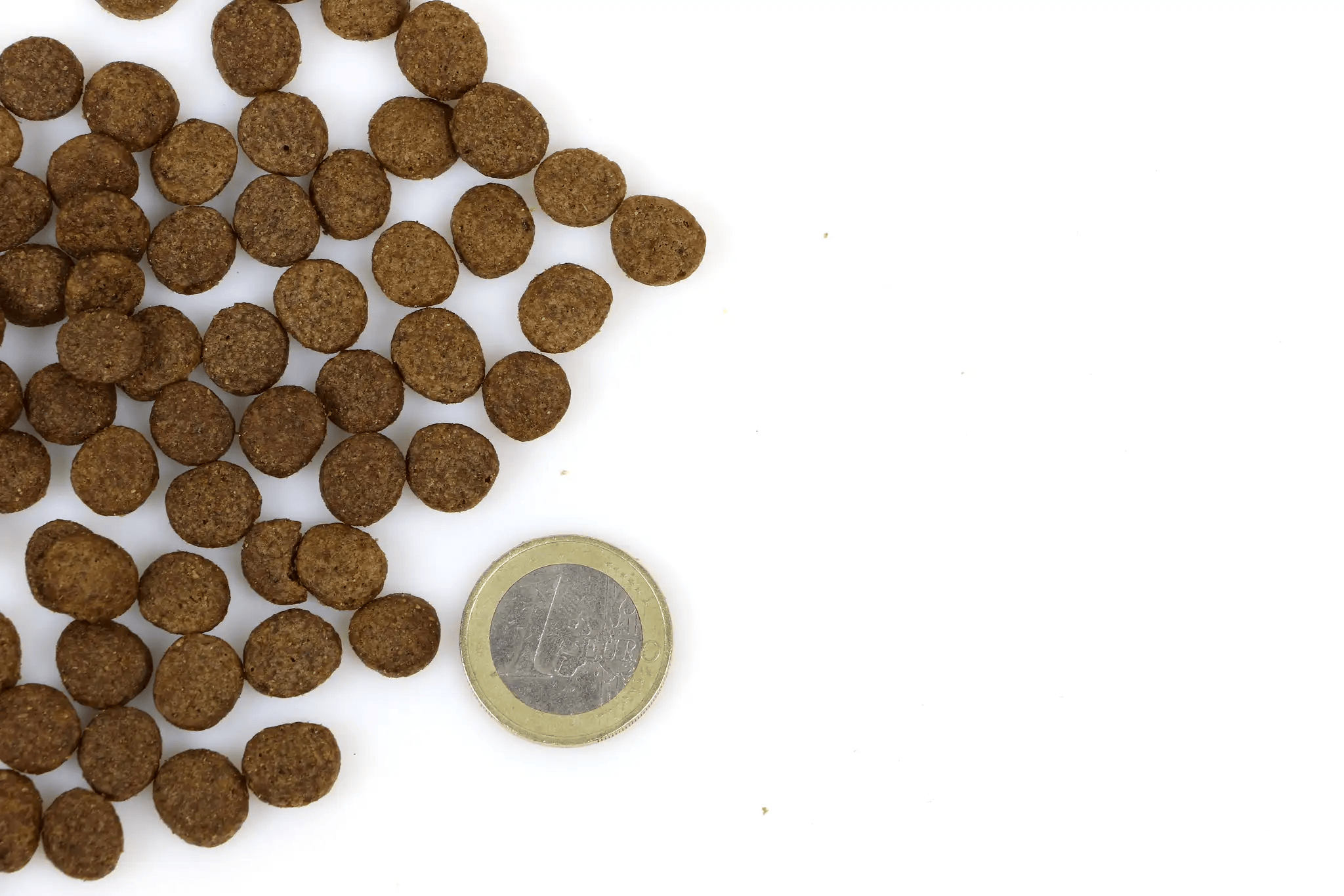 Hmotnost krmné dávky uvedená na obalu krmiva je orientační. Individuálně závisí na plemeni, věku, aktivitě, temperamentu, zátěži, genetických faktorech. Nepřekrmte svého psa v důsledku toho, že se necháte ovlivnit jeho chutí k jídlu a dychtivostí po granulích. Překrmení je nejčastější příčinou poruchy trávení. Denní krmnou dávku rozdělte štěňatům podle věku na 5-3 porce, dospělým jedincům na porce dvě. Krmivo můžete zkrmovat suché nebo navlhčené, navlhčené nenechávejte v misce déle než půl hodiny. Pes musí mít dostatek pitné vody. Na krmivo přecházejte postupně. Přechodu na nové krmivo věnujte několik dní, kdy budete míchat nové se stávajícím.
