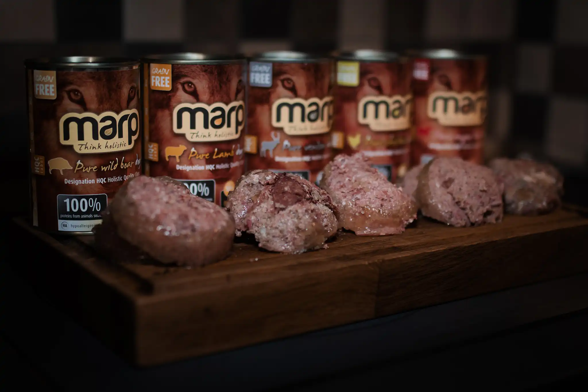 Víme, že pes je masožravec a proto ho jako takového ctíme. Konzervy Marp Pure obsahují 100% bílkovin ze živočišných zdrojů. Obsahují pouze maso, vnitřnosti, vývar a minerály. Nepoužíváme žádné umělé konzervanty, barviva, plnidla apod a jsou vždy bez jakýchkoliv obilovin. Konzerva Marp se zvěřinou bez obilovin je vhodná pro psy s citlivým zažíváním a dle našich zkušeností je velmi vhodná i pro psy s potravními alergiemi.