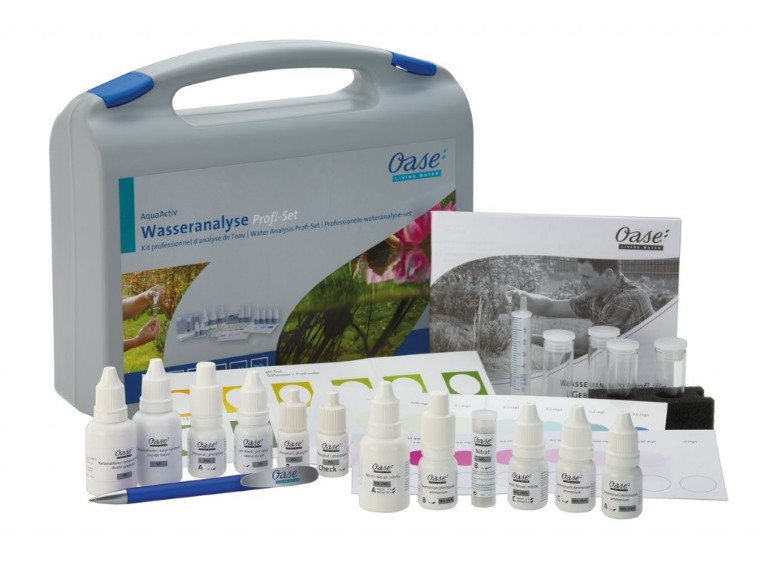 Kompletní Profi-Set pro přesné měření nejdůležitějších parametrů vody ve vašem jezírku nebo akváriu. Tento praktický kufřík obsahuje kapalinová činidla a barevné kontrolní tabulky, které vám umožní rychle a přesně analyzovat kvalitu vody.