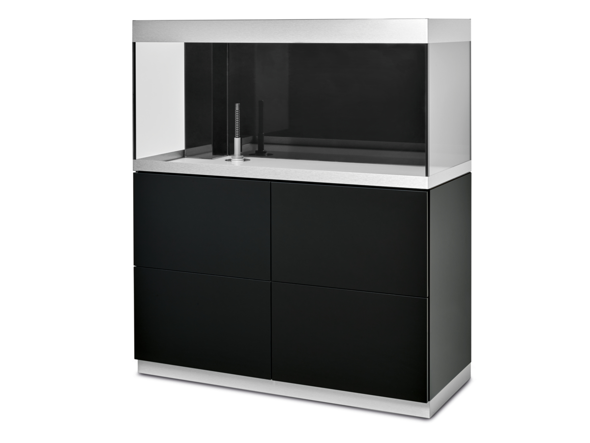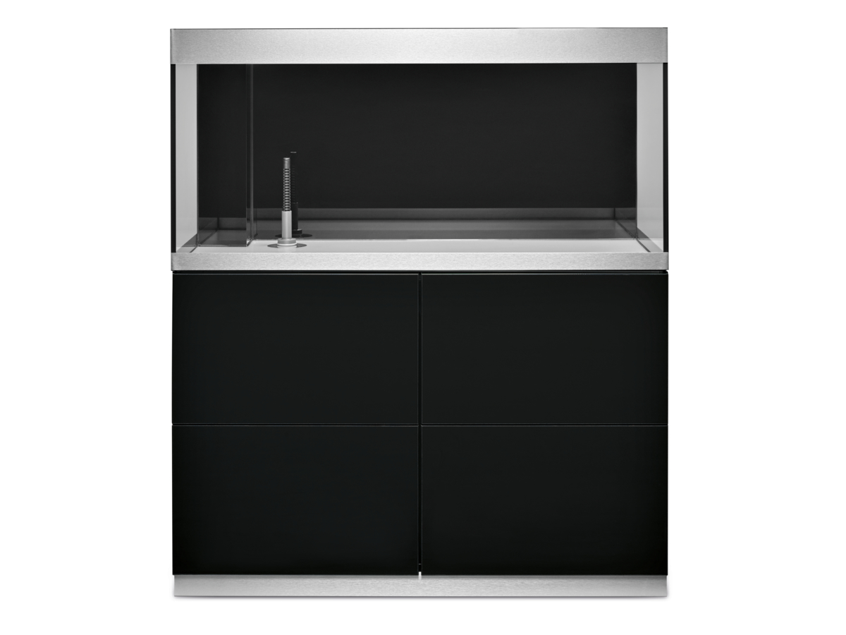 Jednoduchá instalace: Stabilní kovové nohy jsou kdykoliv snadno přístupné přes vnitřek skříňky. Zajišťují bezpečnou a optimální stabilitu akvária