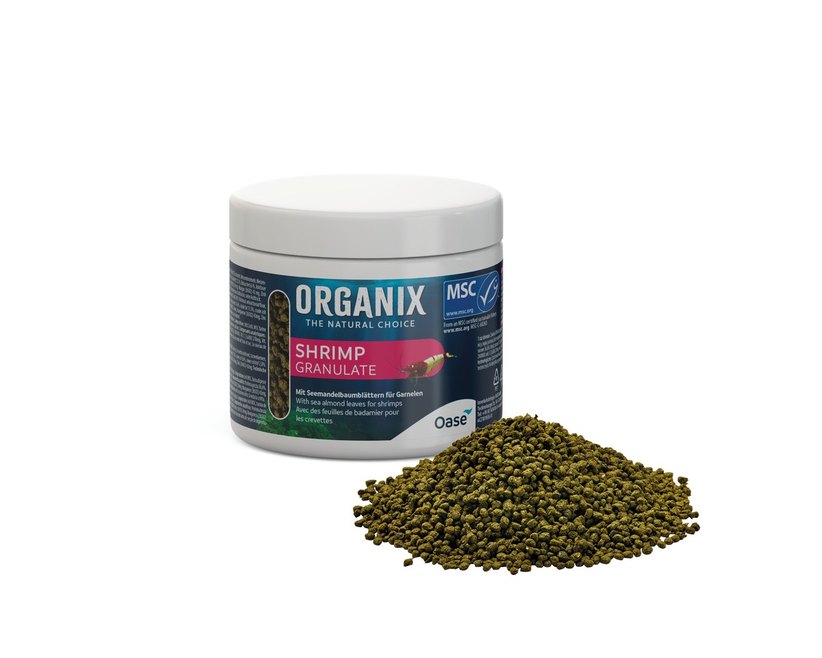 Velké kusy granulí v Organix Shrimp Granule odpovídají preferencím krevet a slibují rychlé potopení. To umožňuje živočichům žijícím na dně, aby se mohli krmit bez stresu.Pečlivě navržené složení obsahuje vodní bílkoviny, rostlinné stavební bloky a další složky specifické pro krevety. Optimalizováno speciální směsí řas. Vápník může přispět k podpoře silného krunýře a celkového vývoje krevet. Obzvlášť lahodnou chuť dodává 10 % vrcholáku pravého (Terminalia catappa).