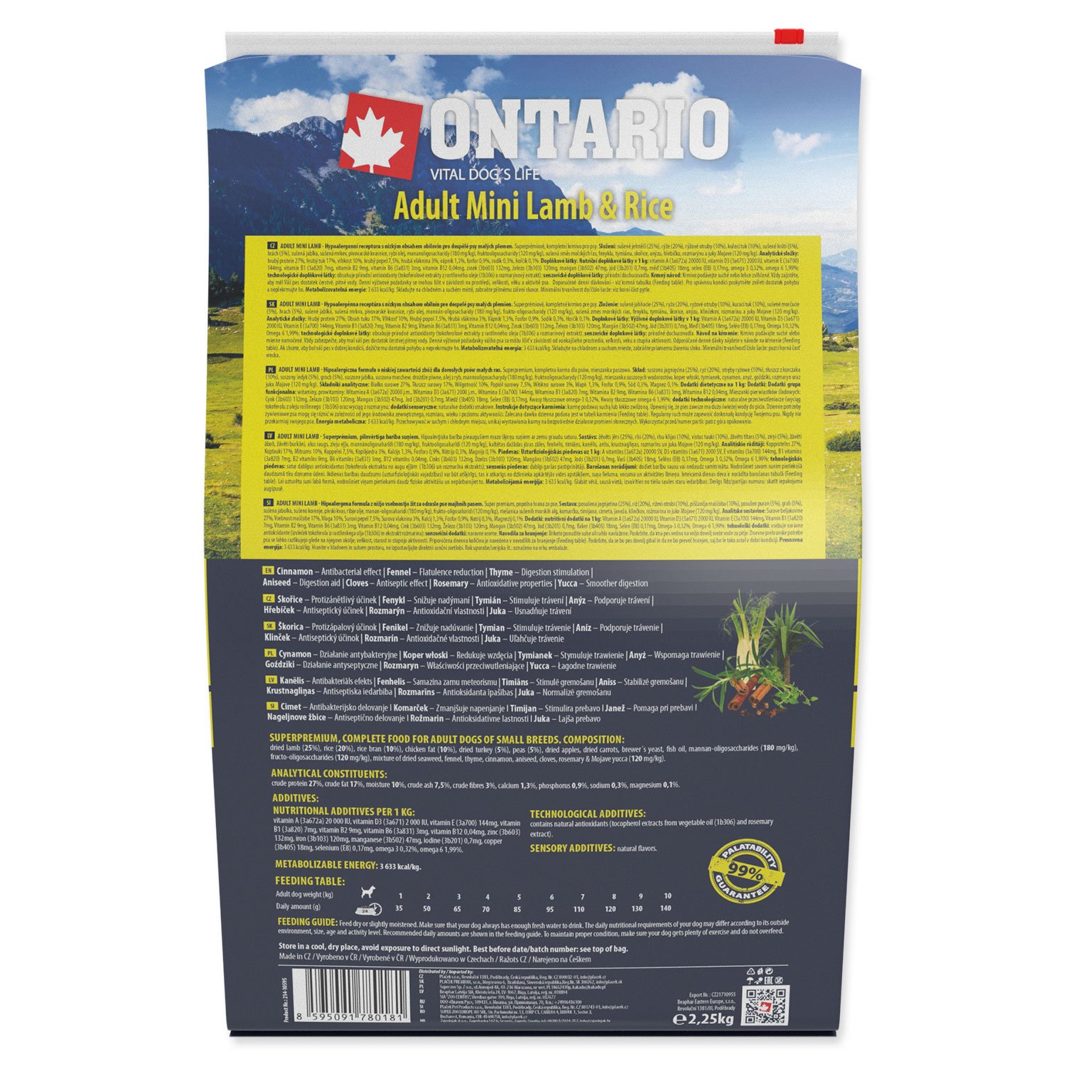 Krmivo pro dospělé psy musí splňovat veškeré výživové a nutriční požadavky pro zdravé fungování celého organismu. Proto značka Ontario vyvinula ve spolupráci s veterináři a nutričními specialisty unikátní a výjimečně chutnou recepturu, která poskytuje vyvážené složení a správný poměr všech živin. Kvalitní strava je jednou z nejdůležitějších podmínek pro zdravý a dlouhý život Vašeho psa. Receptura založená na vysokým podílu proteinů z jehněčího masa podporující vitalitu, kondici a správné zažívání psa a rýži, jako zdroj sacharidů. S nízkým obsahem obilovin, bez pšenice nebo kukuřice. Jedinou obilovinou je rýže. Vyvážené složení pro zdravé fungování a vývoj celého organismu. Krmivo obsahuje speciální mix bylinek a koření, zejména anýz, hřebíček a mořské řasy pro udržení správné ústní hygieny a zdravých zubů.Hlavní přednosti