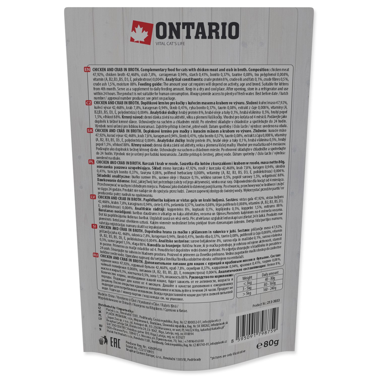 Doplňkové krmivo pro kočky s kuřecím masem a krabem ve vývaru