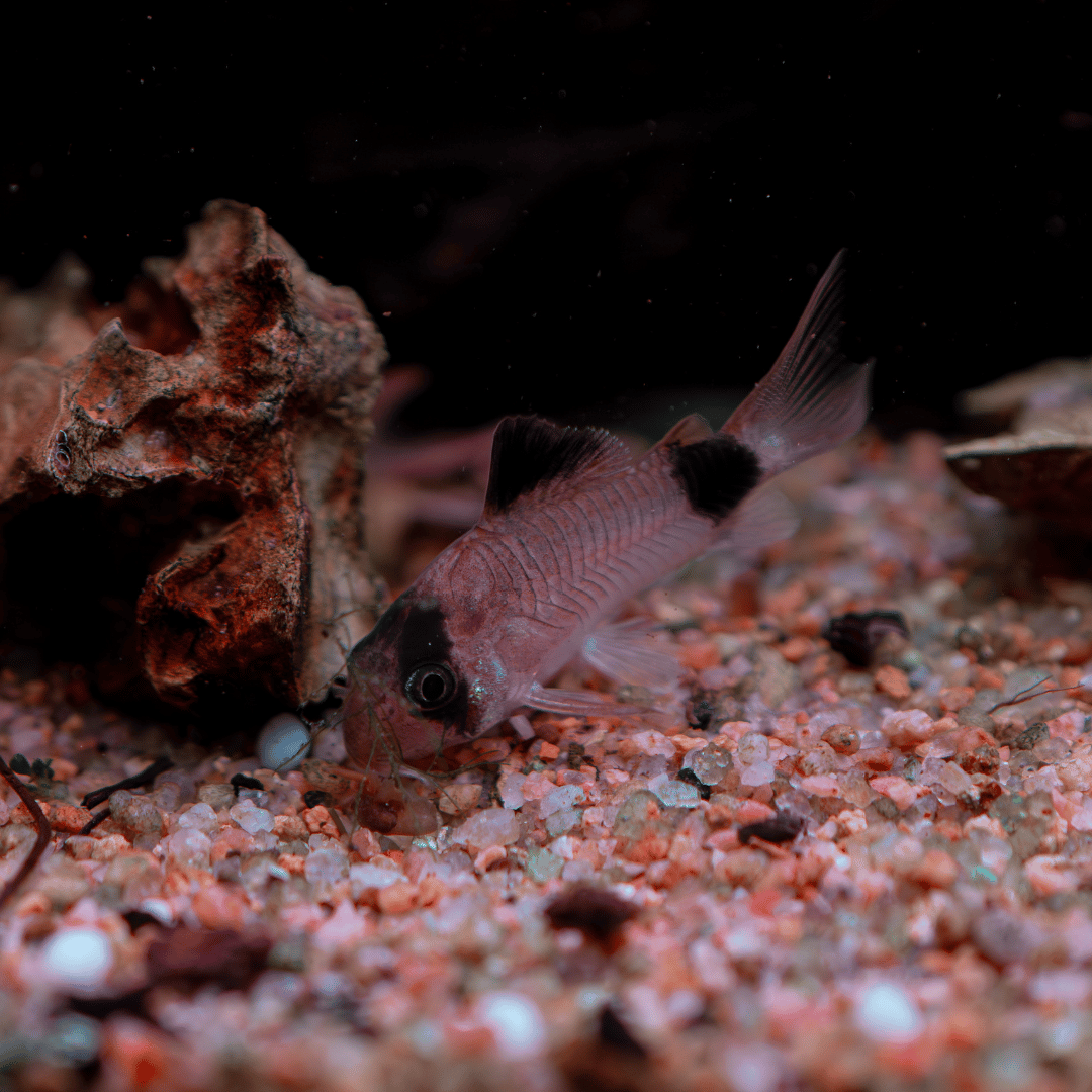 Velice aktivní, ale plachá ryby, která se zdržuje ve spodní části akvária. Svým barevným vzorem a černým pruhem přes oko hřebetní ploutev a před zadní ploutvý připomíná pandu. Veškerou potravu přijímá primárně ze dna a proto je nutné živočichy chovat na jemném písčitém dně, aby si neporanili ústa.