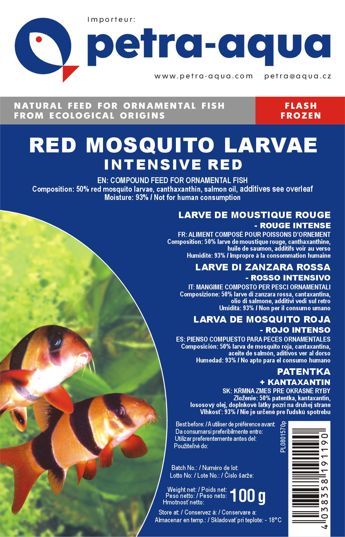 Čistá nezpracovaná Červená patentka (larvy pakomára) pro krmení akvarijních ryb s přírodním barvivem