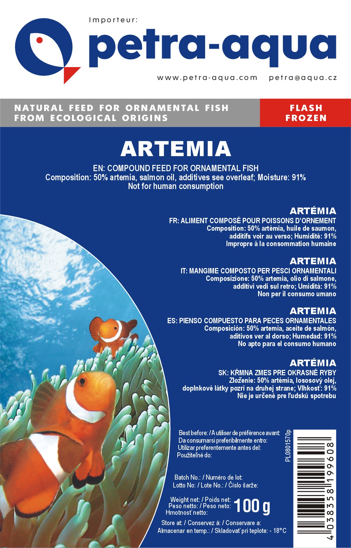 Vysoká nutriční hodnota - Mražené krmivo si zachovává většinu živin, vitamínů a minerálů. Přirozené bílkoviny a tuky důležité pro růst, imunitu a barvu ryb.